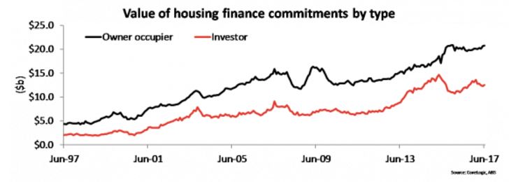 In June 2017 there was $20.7 billion in housing finance commitments to owner occupiers with a further $12.5 billion to investors.