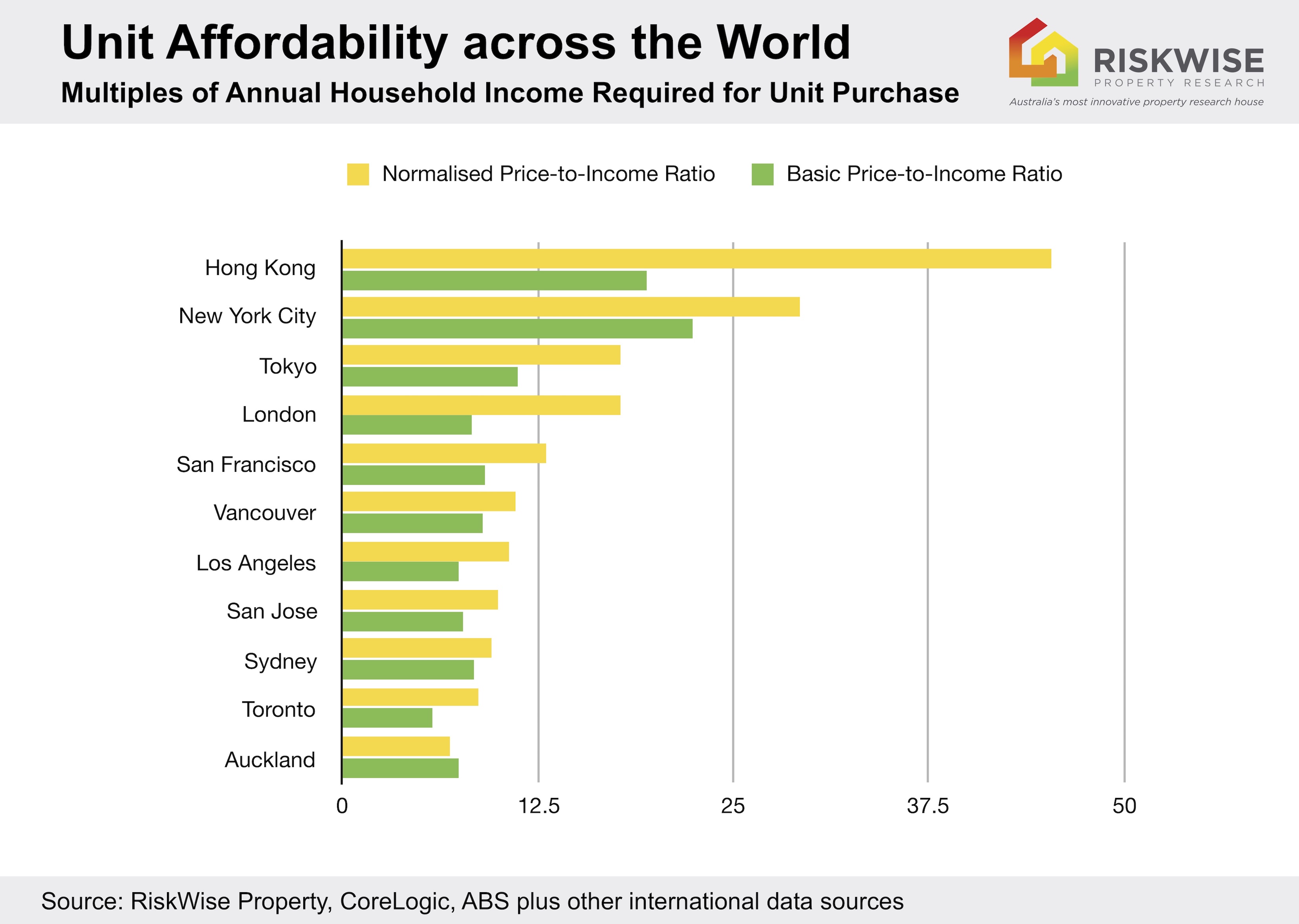 The RiskWise analysis is at odds with the 14th Annual Demographia International Housing Affordability Survey released earlier this year which named Sydney as the 2nd most expensive city in the world for housing affordability, because the metrics used by the survey to determine global rankings is too simplistic.