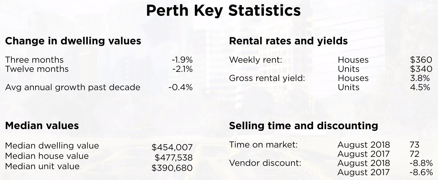 For a brief period earlier in the year, Perth’s housing market was showing some positive month on month improvements in housing values, however values have ticked lower over each of the past four months to be down 2.3% over the first eight months of the year.